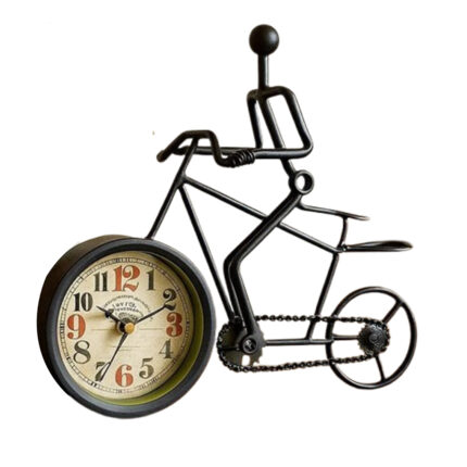Horloge à poser décorative haut de gamme en noir design Vélo Minimaliste de style Retro Art Mouvement à quartz silencieux