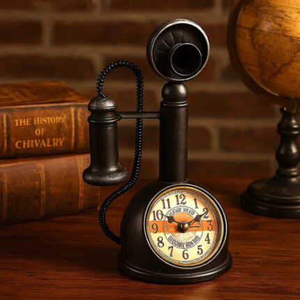 Horloge à poser décorative haut de gamme en noir poudré design Téléphone Minimaliste de style Retro Art Mouvement à quartz silencieux