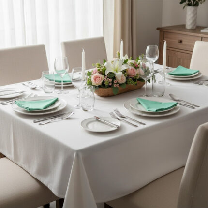 Ensemble 1 Nappe et 6 Serviette de Table haut de gamme en Vert d’eau confectionnée en 100% lin قمرايا raffinées fait à la main M18
