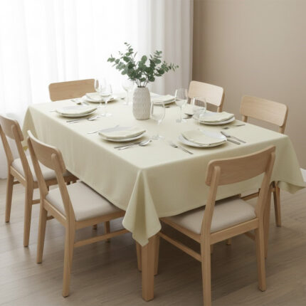 Nappe rectangulaire créme haut de gamme confectionnée en 100% lin قمرايا raffinées fait à la main