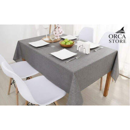 Nappe rectangulaire gris haut de gamme confectionnée en 100% lin قمرايا raffinées fait à la main
