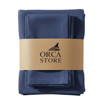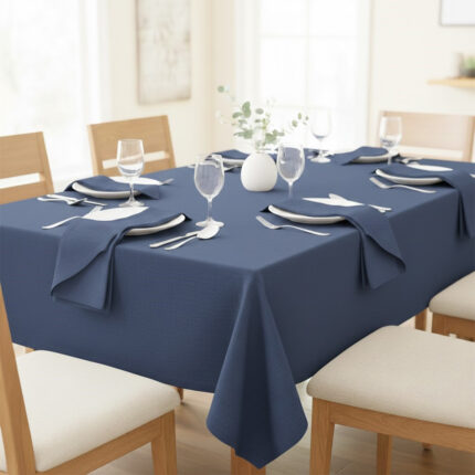 Ensemble 1 Nappe et 6 Serviette de Table haut de gamme en Bleu mer confectionnée en 100% lin قمرايا raffinées fait à la main M12