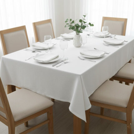 Nappe rectangulaire blanc cassé haut de gamme confectionnée en 100% lin قمرايا raffinées fait à la main