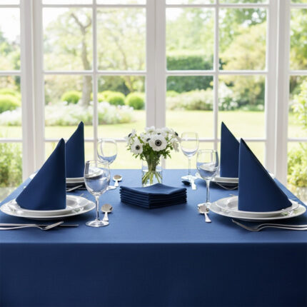 Ensemble 1 Nappe et 6 Serviette de Table haut de gamme en Bleu roi confectionnée en 100% lin قمرايا raffinées fait à la main M15
