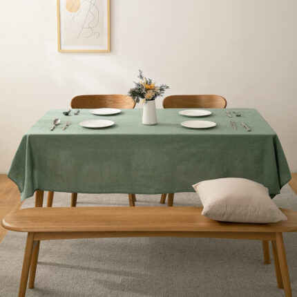 Ensemble 1 Nappe et 6 Serviette de Table haut de gamme en Vert pistache confectionnée en 100% lin قمرايا raffinées fait à la main M23