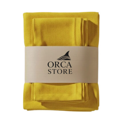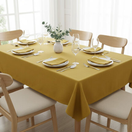 Ensemble 1 Nappe et 6 Serviette de Table haut de gamme en Jaune confectionnée en 100% lin قمرايا raffinées fait à la main M21