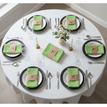 Ensemble de 6 Serviette de Table haut de gamme en Vert pistache confectionnée en 100% lin قمرايا raffinées fait à la main M63
