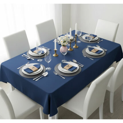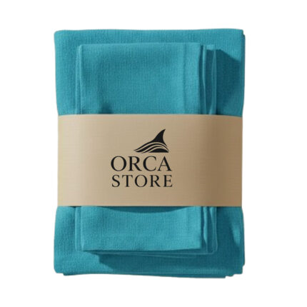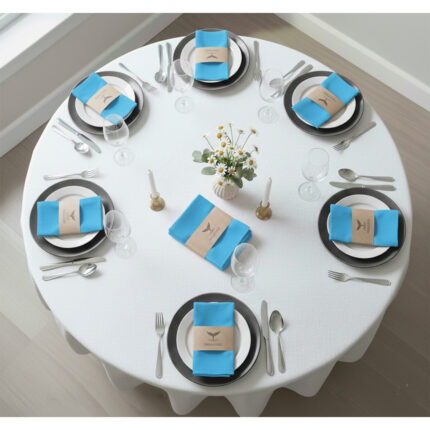 Ensemble 1 Nappe et 6 Serviette de Table haut de gamme en Bleu turquoise confectionnée en 100% lin قمرايا raffinées fait à la main M36
