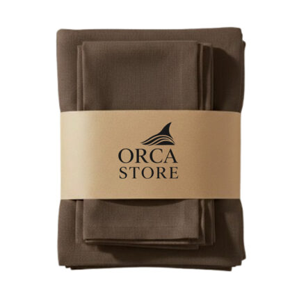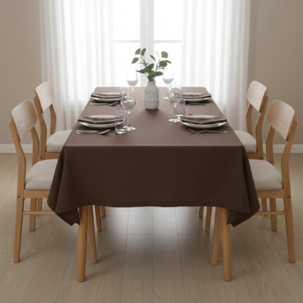 Ensemble 1 Nappe et 6 Serviette de Table haut de gamme en Marron confectionnée en 100% lin قمرايا raffinées fait à la main M28