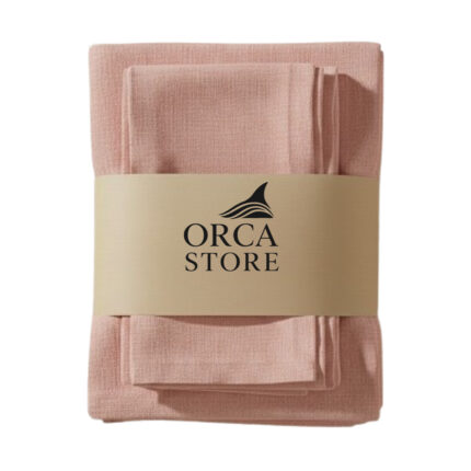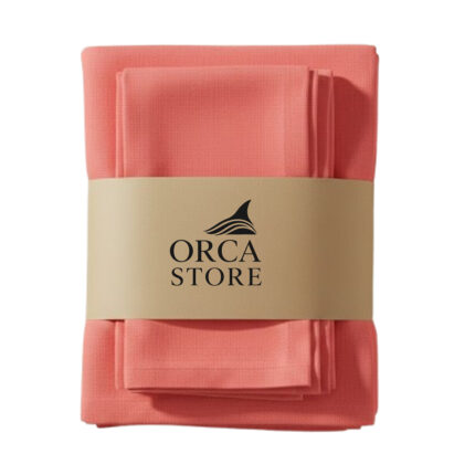 Ensemble 1 Nappe et 6 Serviette de Table haut de gamme en Corail confectionnée en 100% lin قمرايا raffinées fait à la main M34