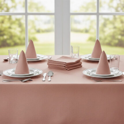 Ensemble 1 Nappe et 6 Serviette de Table haut de gamme en Rose confectionnée en 100% lin قمرايا raffinées fait à la main M29