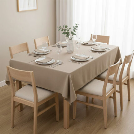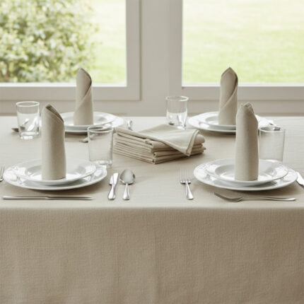 Ensemble 1 Nappe et 6 Serviette de Table haut de gamme en Beige confectionnée en 100% lin قمرايا raffinées fait à la main M35