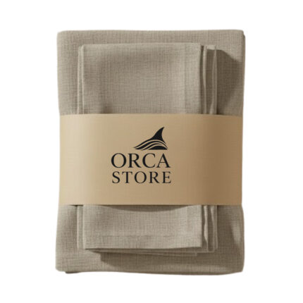 Ensemble 1 Nappe et 6 Serviette de Table haut de gamme en Grège confectionnée en 100% lin قمرايا raffinées fait à la main M32