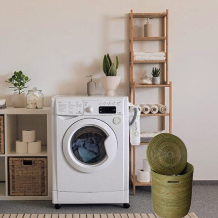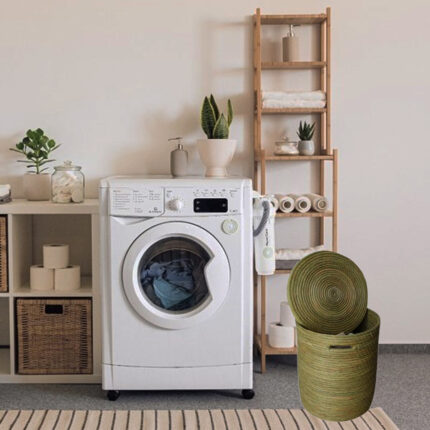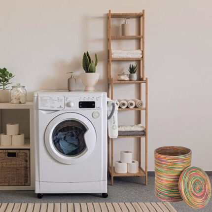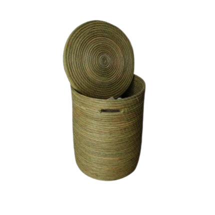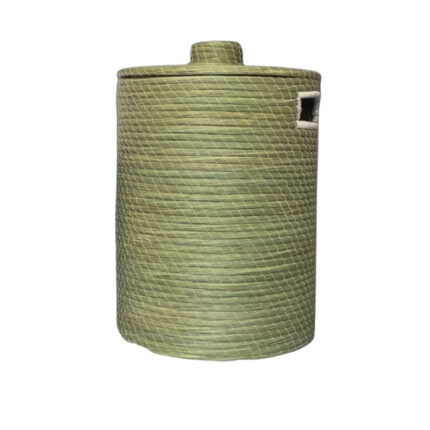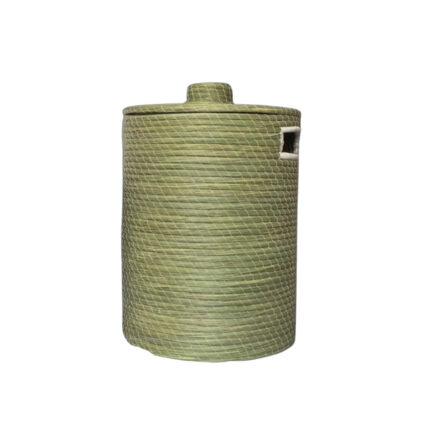 Panier à linge rond rustique en fibres naturelles végétales coloré tissé à la main grand modèle