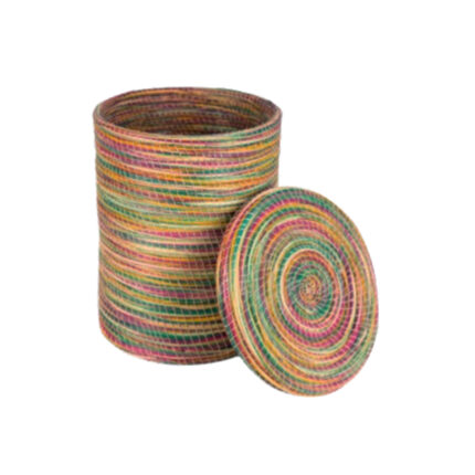 Boite de rangement en fibres naturelles végétales coloré tissé à la main petit modèle coloré