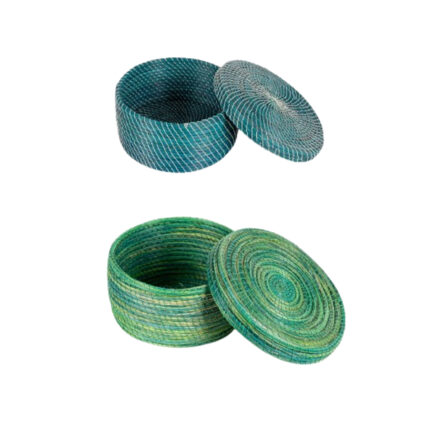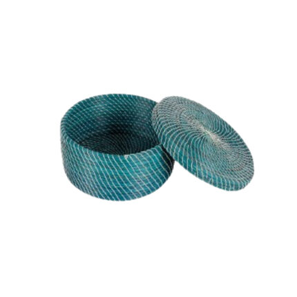 Boite de rangement en fibres naturelles végétales coloré tissé à la main petit modèle en bleu