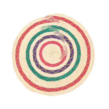 Paillasson Tapis d’entrée rond tressé à la main en fibre de palmier design florales