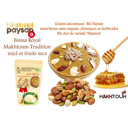Makhtoum Tradition Bsissa blé aux fruits secs 100% naturel – 250g – Grains ancestraux Blé dur de variété « Hamira »
