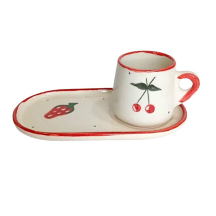 Grande tasse à café avec sous tasse large assortie haut de gamme en céramique de la collection – Les Quatre Saisons
