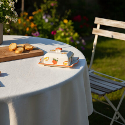 Beurrier haut de gamme en fine céramique blanche de la collection – Les Quatre Saisons
