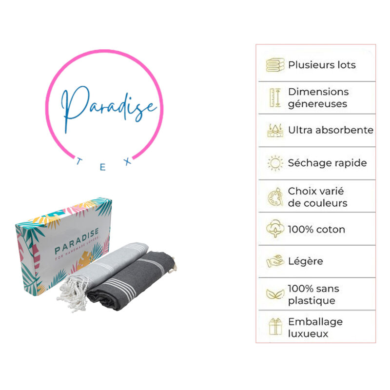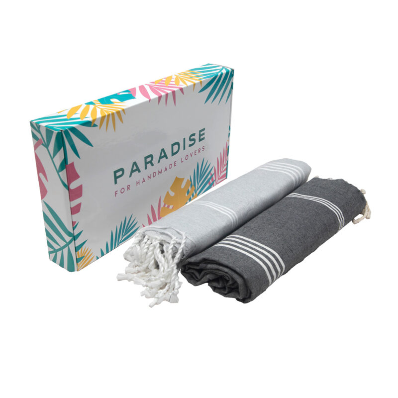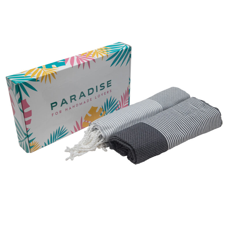 Set de 2 Serviette traditionnel polyvalence haut de gamme en coton – Fouta Bali XL En Gris et Gris anthracite rayée blanc Bali XL 2012