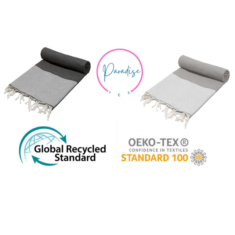 Serviette traditionnel polyvalence haut de gamme en coton – Fouta nid d’abeille XL En Gris et Gris anthracite rayée blanc Nid d’abeille XL