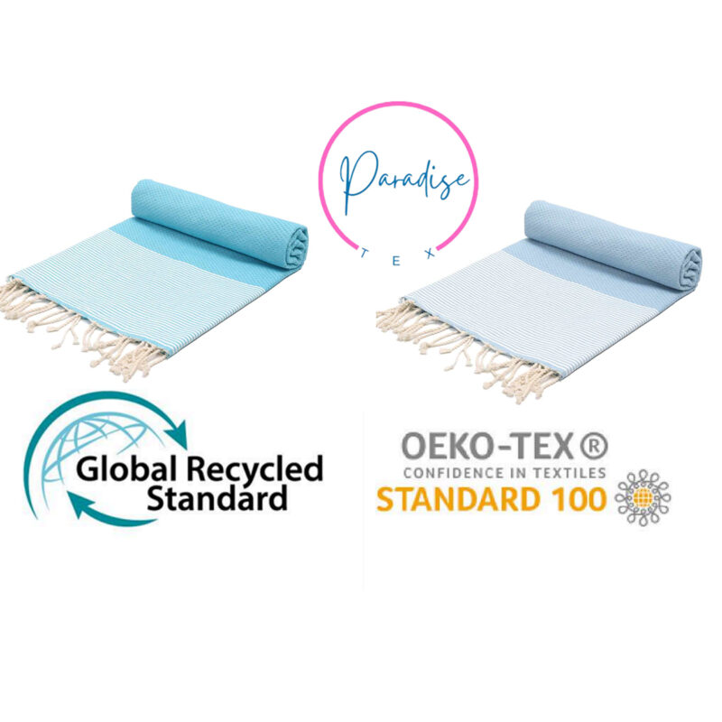 Coffret de 2 Serviettes traditionnel polyvalence haut de gamme en coton – Fouta nid d’abeille XL En Turquoise et Vert d’eau rayée blanc Nid d’abeille XL