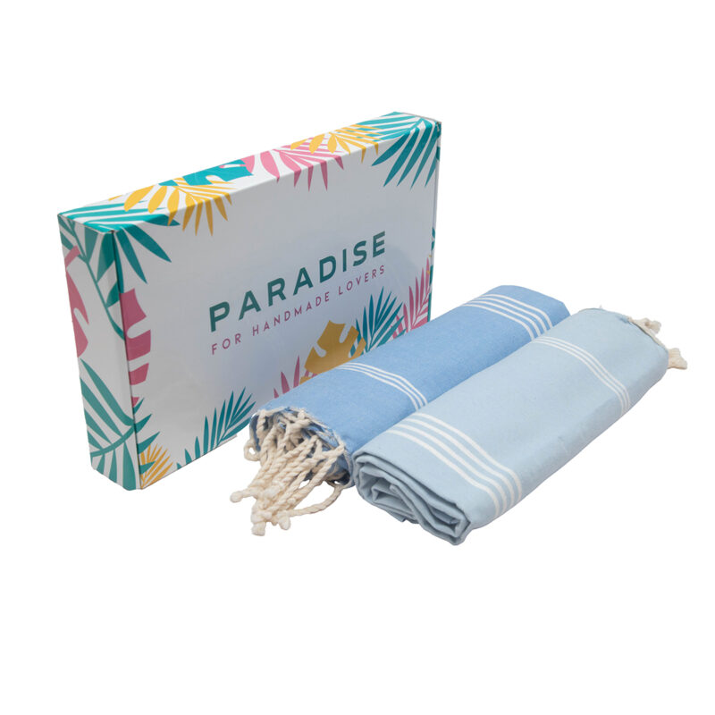 Set de 2 Serviette traditionnel polyvalence haut de gamme en coton – Fouta Bali XL En Bleu ciel foncé et Bleu ciel rayée blanc Bali XL 2016
