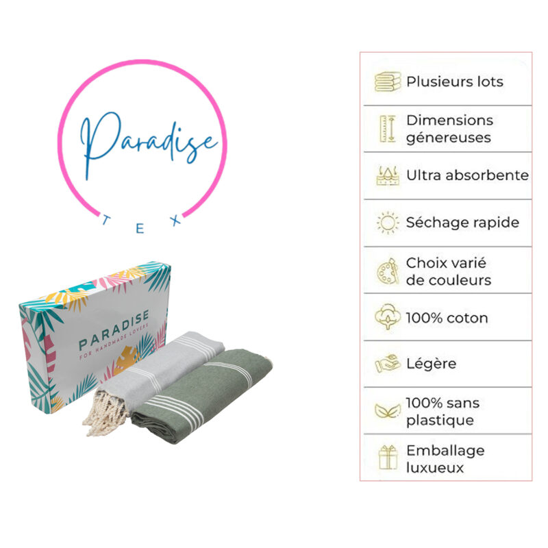 Set de 2 Serviette traditionnel polyvalence haut de gamme en coton – Fouta Bali XL En Gris et Vert kaki rayée blanc Bali XL 2011