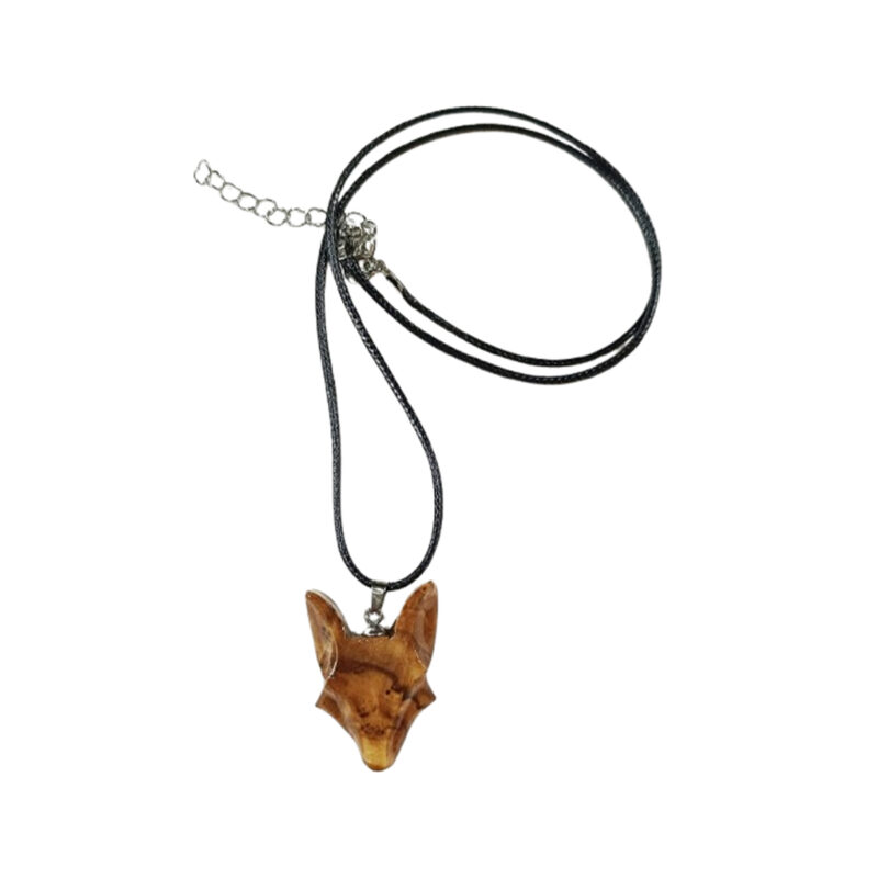 Collier orné d’un pendentif en bois noble sculpté en forme de tète de renard. Inspiré de la nature