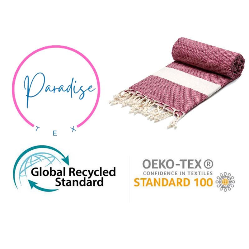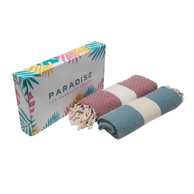 Coffret de 2 Serviette traditionnel polyvalence haut de gamme en coton naturel – Fouta Diamond XL En Rouge bordeaux et Jade rayée blanc Diamond XL