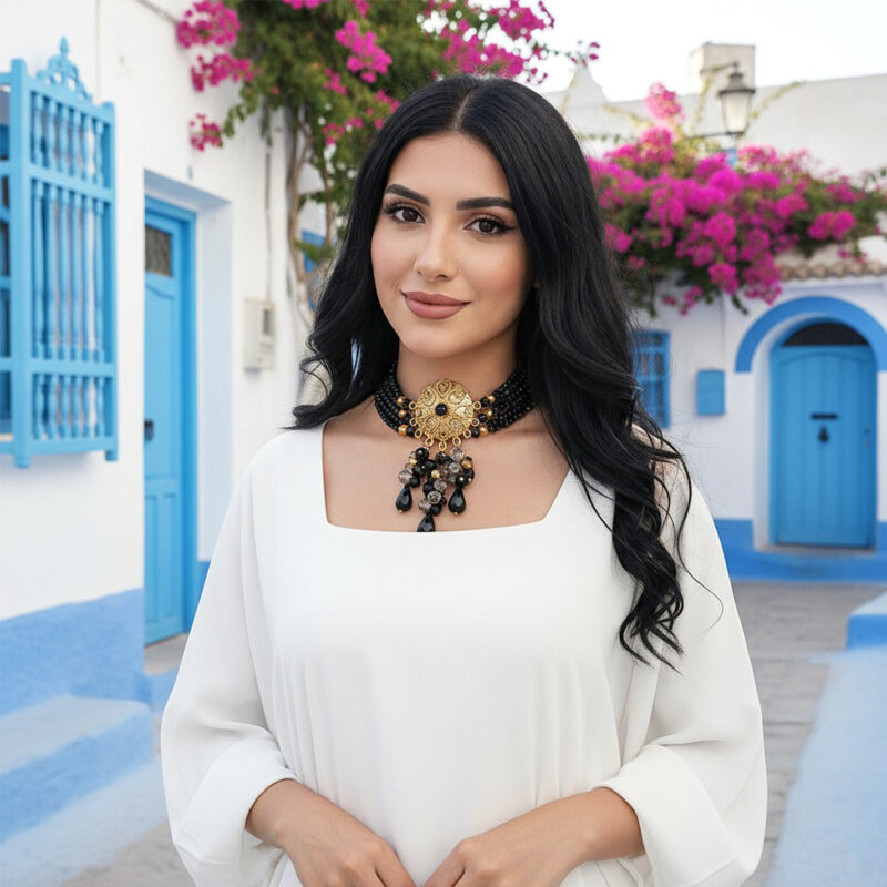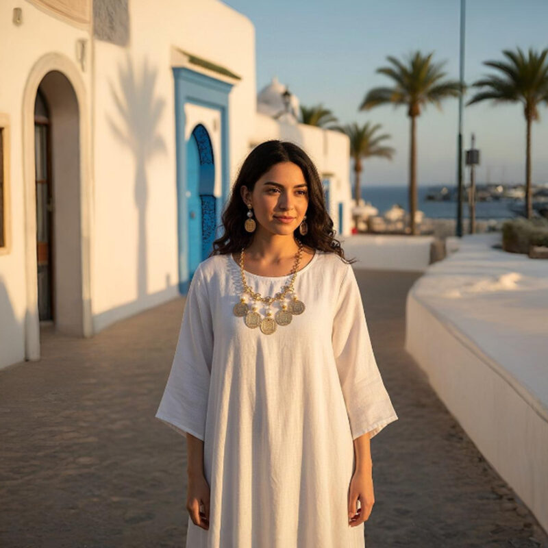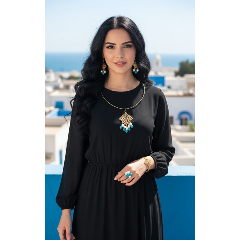 Coffret cadeau haut de gamme duo plaisir 3 pièces * Service à café design Sidi Bou Saïd en fine porcelaine et du cuivre martelé fait à la main
