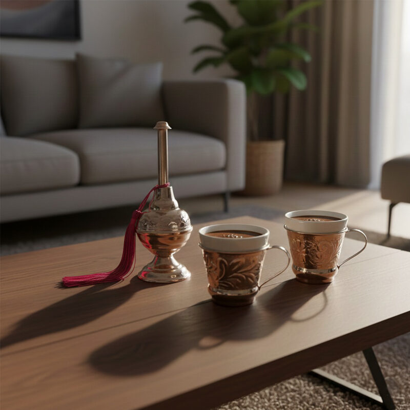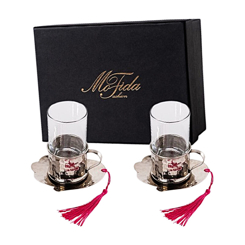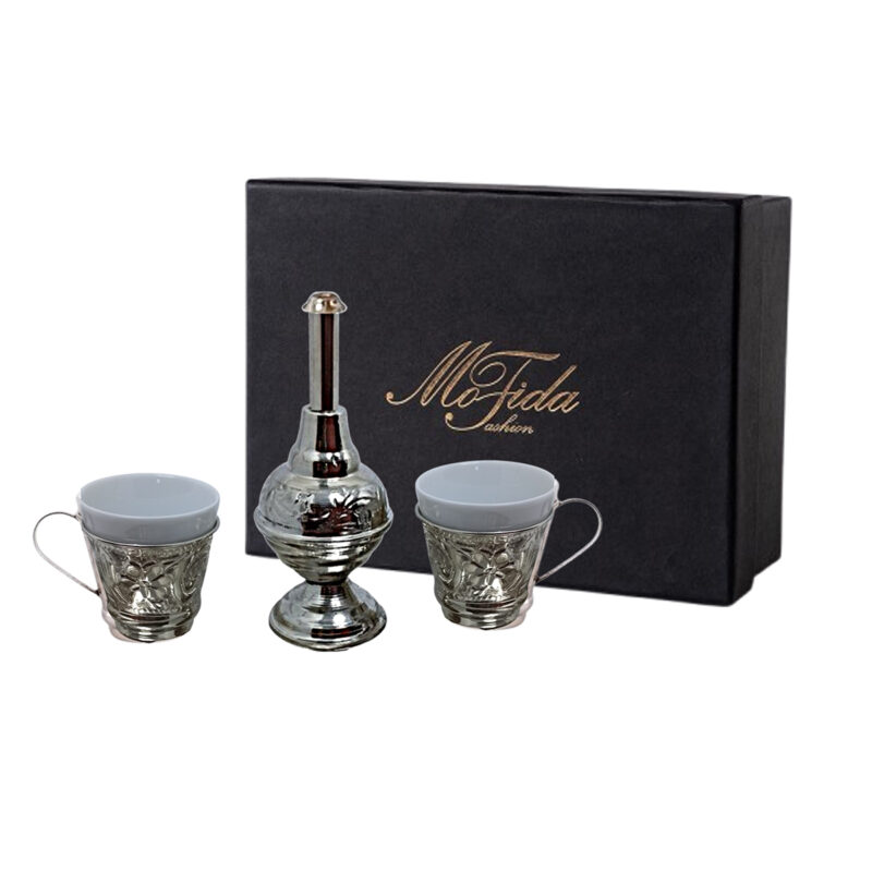 Coffret cadeau haut de gamme duo plaisir 4 pièces * Service à Thé design arabesque en fine verre aspect cristal et du cuivre martelé fait à la main
