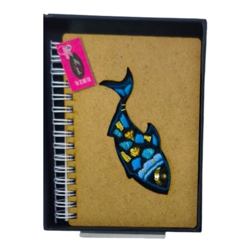 Coffret cadeau haut de gamme 1 pièces * Carnet professionnel, bloc-notes couverture en bois texturé motif poisson brodée main