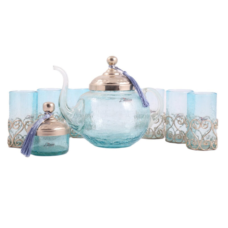 Service à thé rustique haute de gamme en verre soufflé craquelé design sidi bousaid