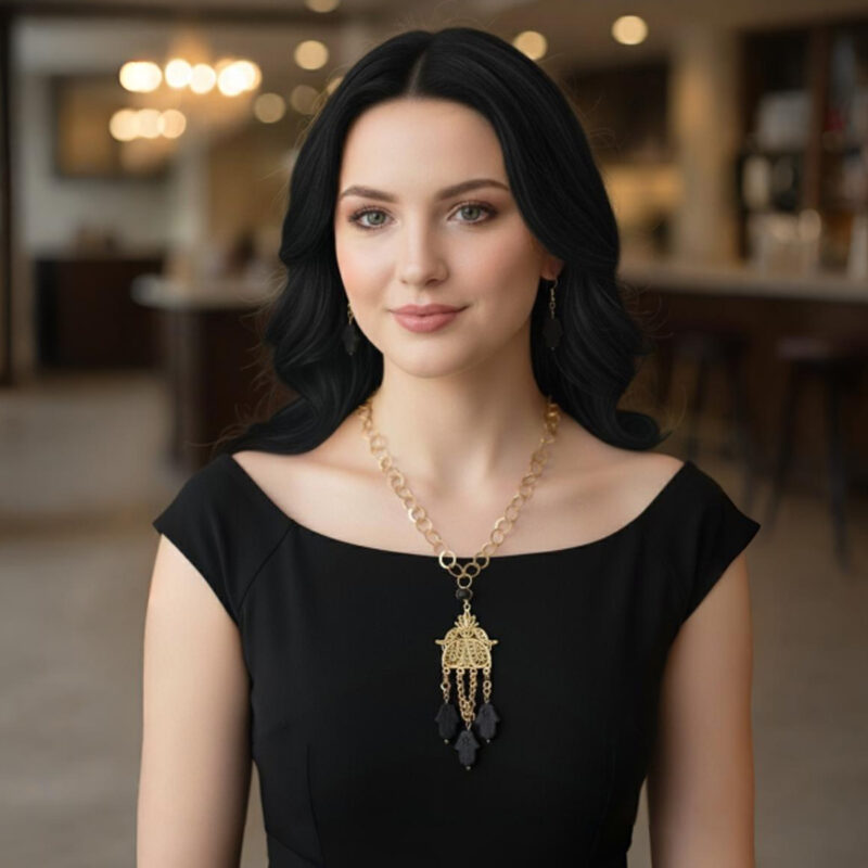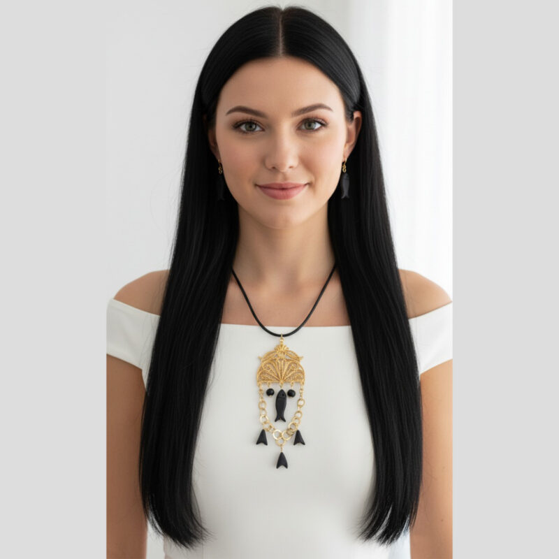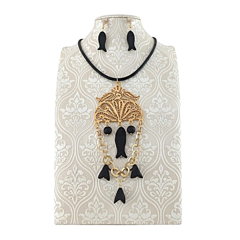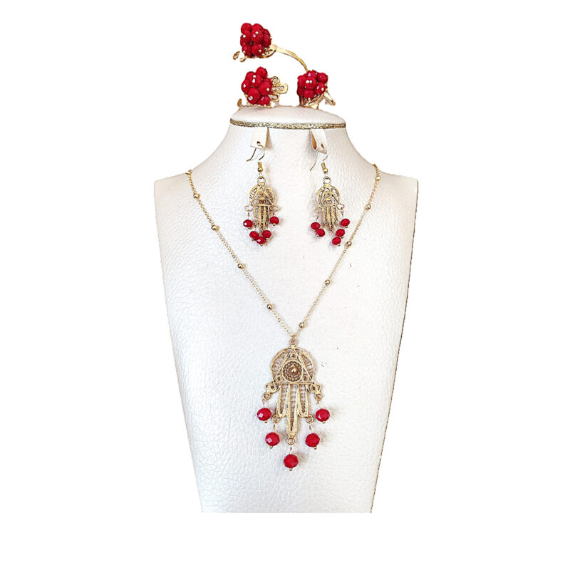 Coffret de Parure design vintage khamsa en filigrane et cuivre trempé dans de l’or Une pièce unique artisanal