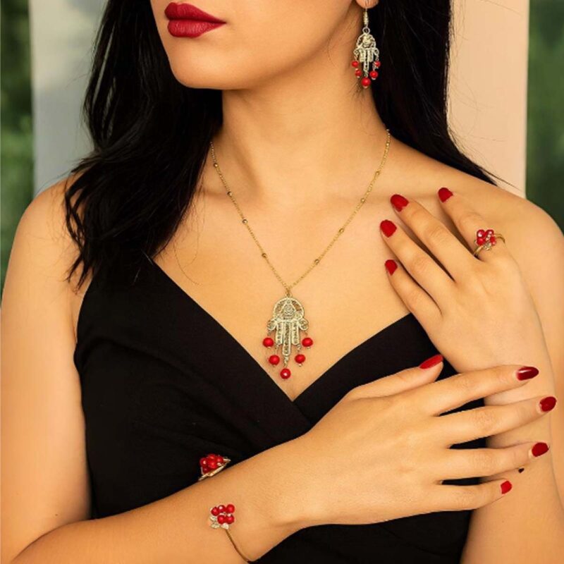 Coffret de Parure design vintage khamsa motifs Amber en cuivre trempé dans de l’or Une pièce unique artisanal