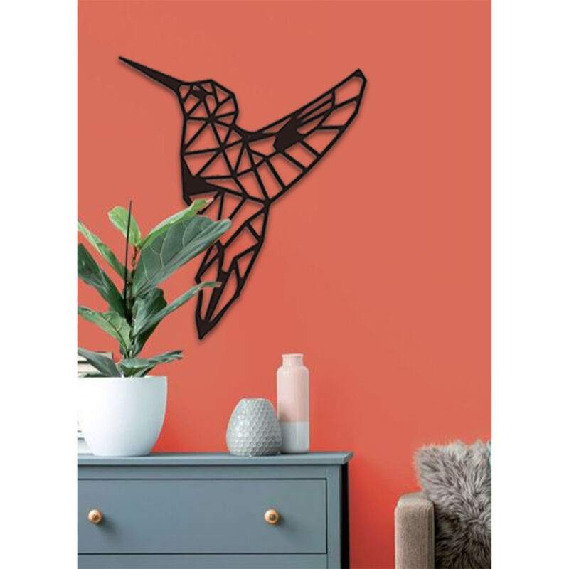 Oiseau noir haut de gamme en bois du style origami géométrique fabrication artisanale
