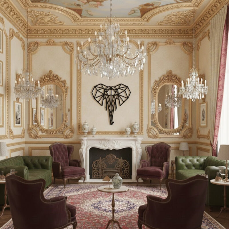 Tête d’Éléphant noir haut de gamme en bois du style origami géométrique fabrication artisanale