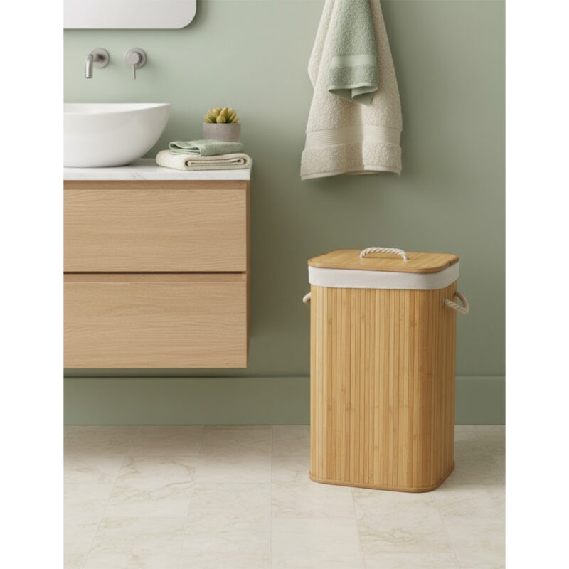 Grand panier à linge d’angle tressé à la main en bambou naturel avec couvercle, tissus intérieur amovible en lin, boîte de tri, boîte de rangement