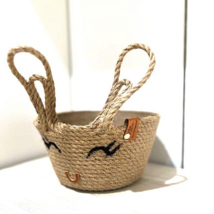 Lot de 2 Petit panier de rangement pour chambre enfants en fibre végétale naturelle design petit lapin