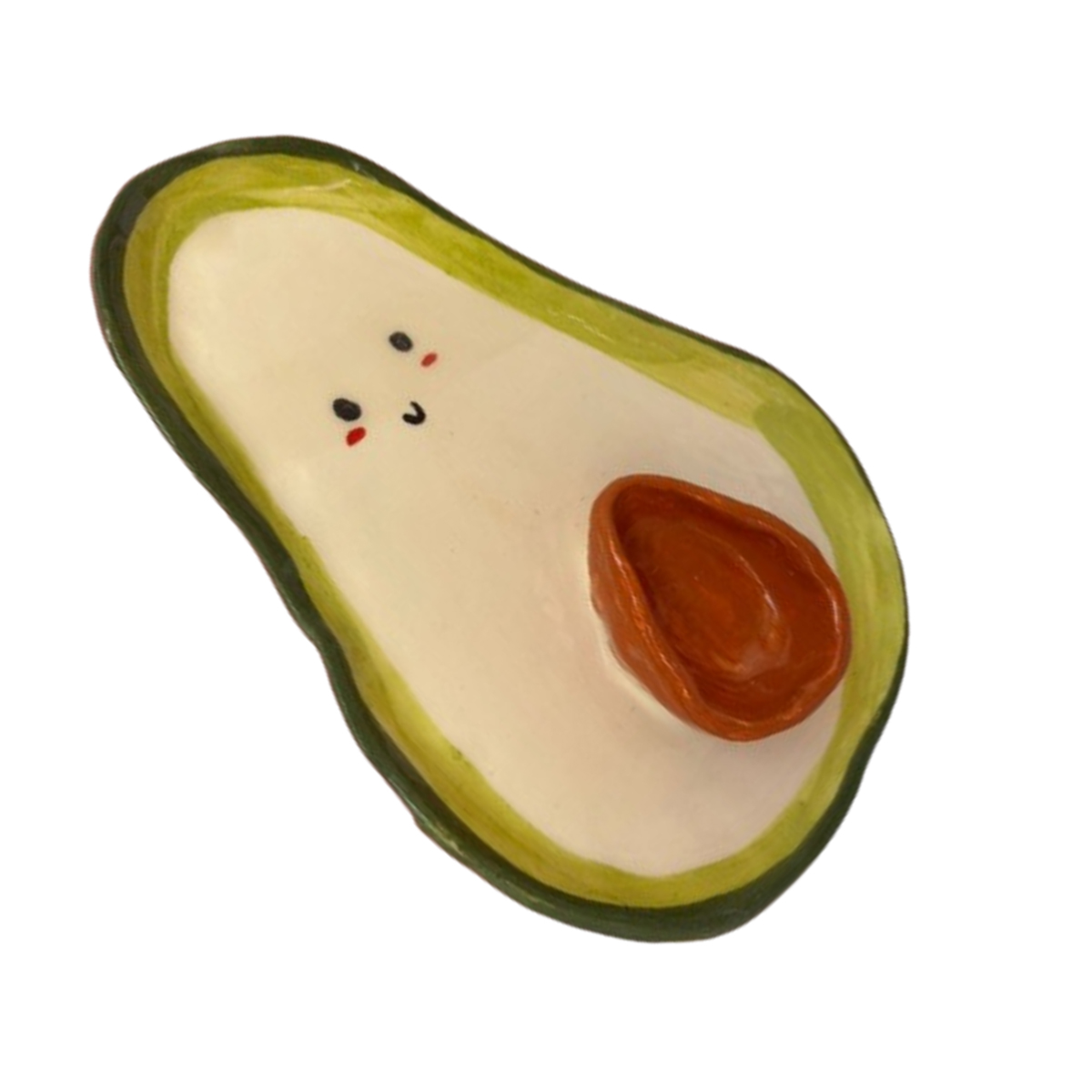 Assiette apéro 2 compartiments esprit vintage motif : avocat, en céramique artisanale fait main