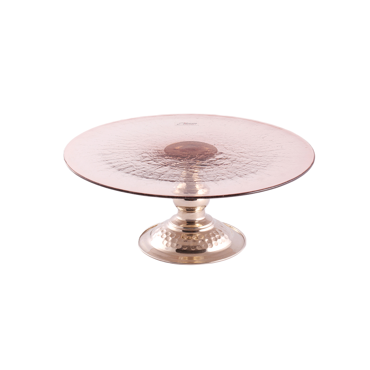 Assiette Présentoir à gâteaux et délices haut de gamme pour sublimer vos moments gourmands, majestueuse en verre soufflé  bouche craquelé ciselée à la main, qui assume définitivement ses contrastes avec cet inventif pieton en cuivre martelé. Grâce à sa grande capacité, cette assiette  présentoir garantit le plaisir à chaque utilisation.