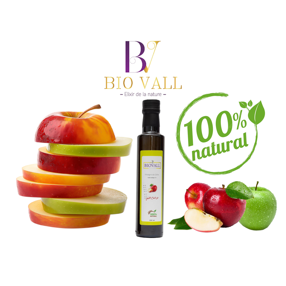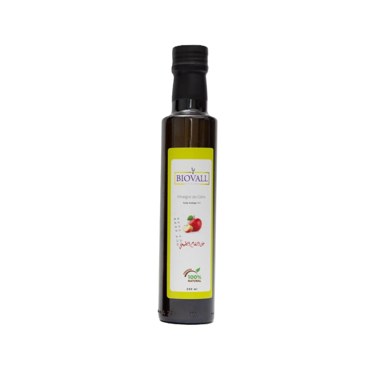 AccueilProduits de terroirProduits certifiés bio Tunisie Biovall Vinaigre de pomme 100% naturel bouteille en verre opaque de 250 ml
