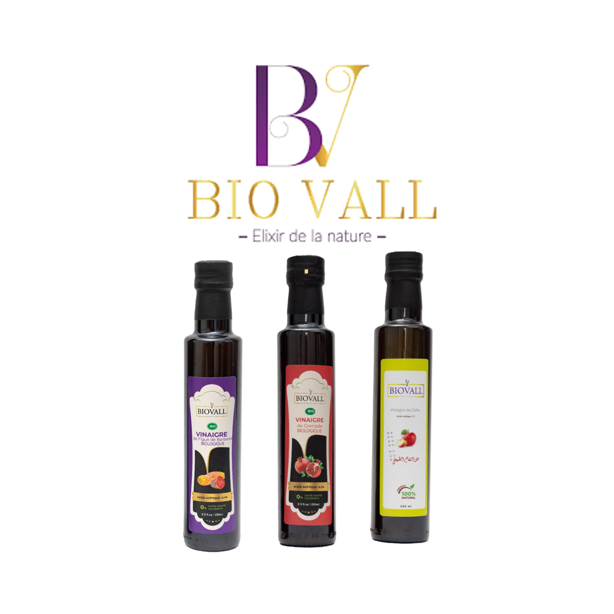 Biovall Vinaigre de grenade BIOLOGIUE 100% naturel bouteille en verre opaque de 250 ml د.ت26.000
