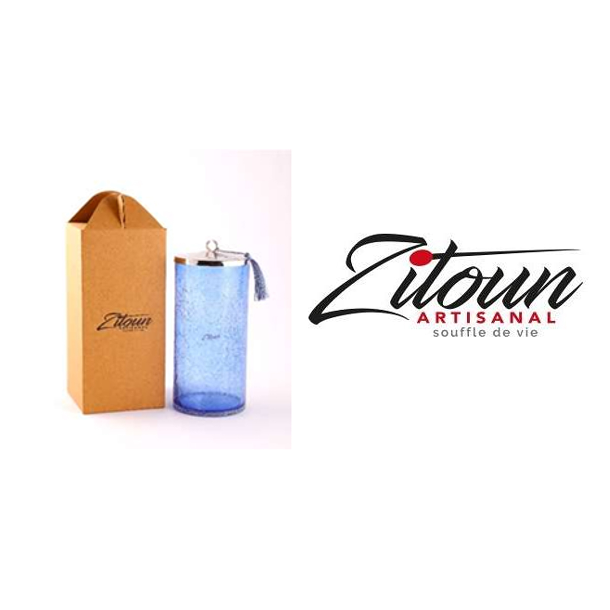 Boite cylindrique Boite de Rangement haut de gamme en verre soufflé craquelé fait à la main MM د.ت60.000