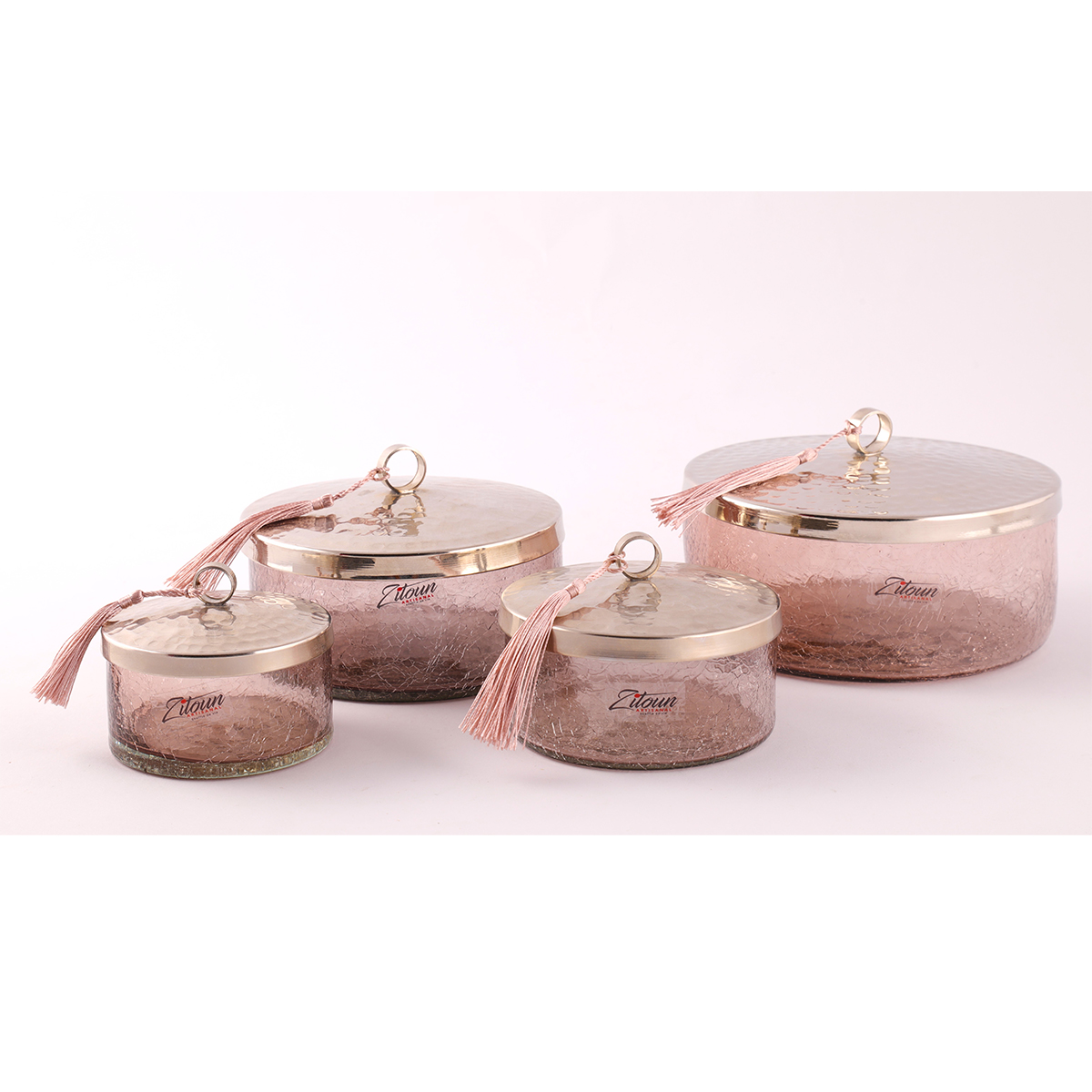 Boite cylindrique Boite de Rangement haut de gamme en verre soufflé craquelé fait à la main GM – T 4 د.ت60.000