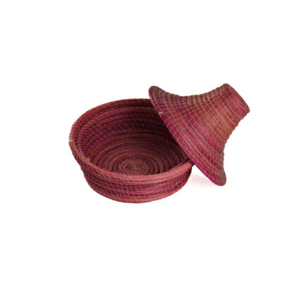 Boite de rangement avec couvercle en fibres naturelles végétales coloré tissé à la main petit modèle en rouge د.ت29.900