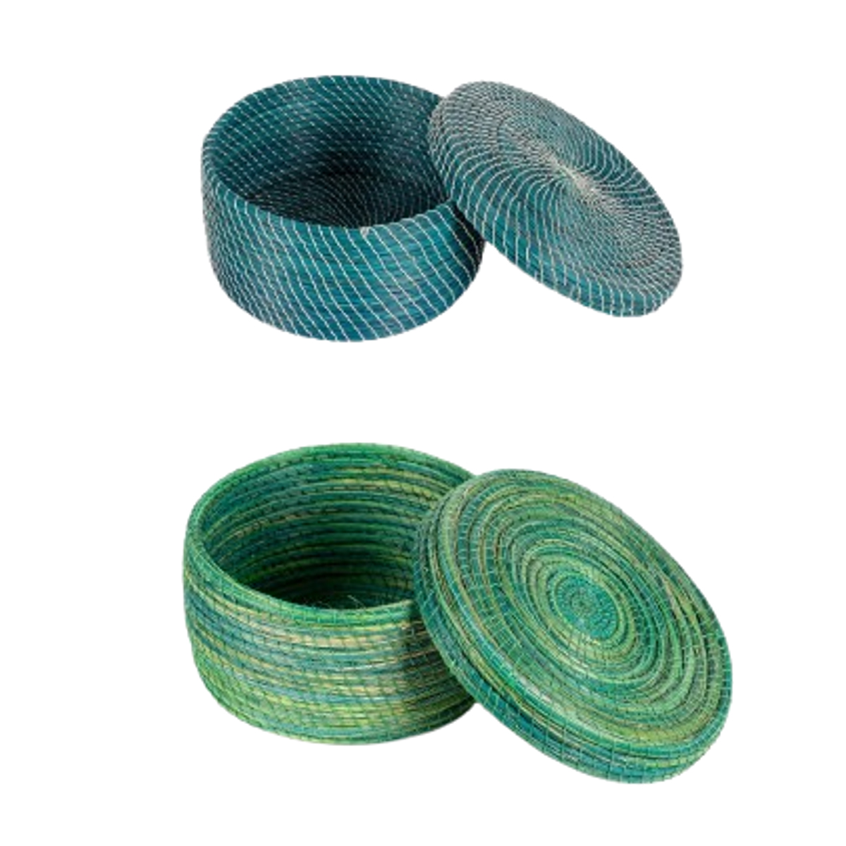 Boite de rangement avec couvercle en fibres naturelles végétales coloré tissé à la main petit modèle bicolor د.ت29.900