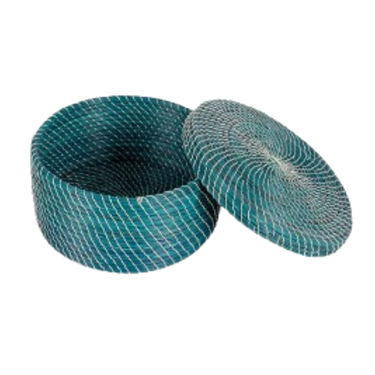 Boite de rangement en fibres naturelles végétales coloré tissé à la main moyen modèle Bleu د.ت34.900